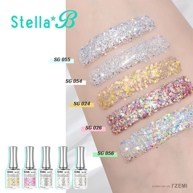 A: Stella B เป็นการผสมผสานเม็ดกริตเตอร์หลากหลายสีสรร ซึ่งรวมทั้งหมดมีเม็ดกริตเตอร์มากกว่า 549 เฉดสี เมื่อเล่นไฟจะให้สีที่แตกต่างถึง 3,843 เฉดสี บอกเลยว่า เล่นแสงเล่นไฟได้สุดพลัง